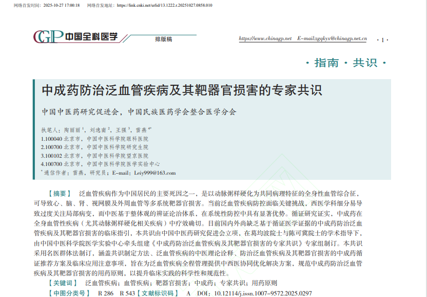 10月27日,由中國(guó)中醫(yī)藥研究促進(jìn)會(huì)立項(xiàng)、中國(guó)中醫(yī)科學(xué)院醫(yī)學(xué)實(shí)驗(yàn)中心牽頭制訂的《中成藥防治泛血管疾病及其靶器官損害的專(zhuān)家共識(shí)》正式發(fā)布,梧州制藥核心產(chǎn)品注射用血栓通(凍干)憑借高質(zhì)量循證證據(jù),成功入選共識(shí)“活血化瘀類(lèi)”推薦用藥,且獲得Ⅰa類(lèi)證據(jù)(最高級(jí)別循證證據(jù))、A級(jí)推薦(最高推薦強(qiáng)度),成為泛血管疾病多靶器官保護(hù)領(lǐng)域的重要中成藥選擇,為臨床中西醫(yī)協(xié)同防治該疾病提供關(guān)鍵用藥依據(jù)。